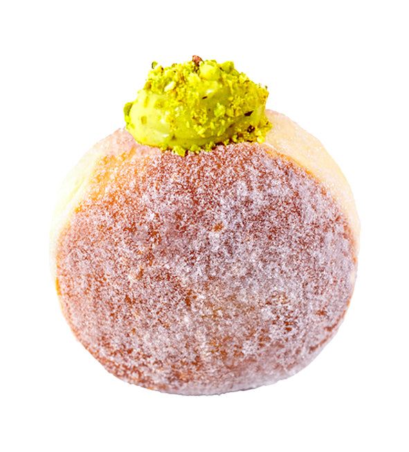 Our brioche doughnut filled with our special house pistachio cream topped with ground pistachios.